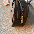This trendy hand bag in stylish plain black is the perfect accessory for any outfit. Made with high-quality materials, it combines fashion and practicality for a versatile addition to your wardrobe. Its sleek design and functionality make it a must-have for anyone seeking both style and utility.